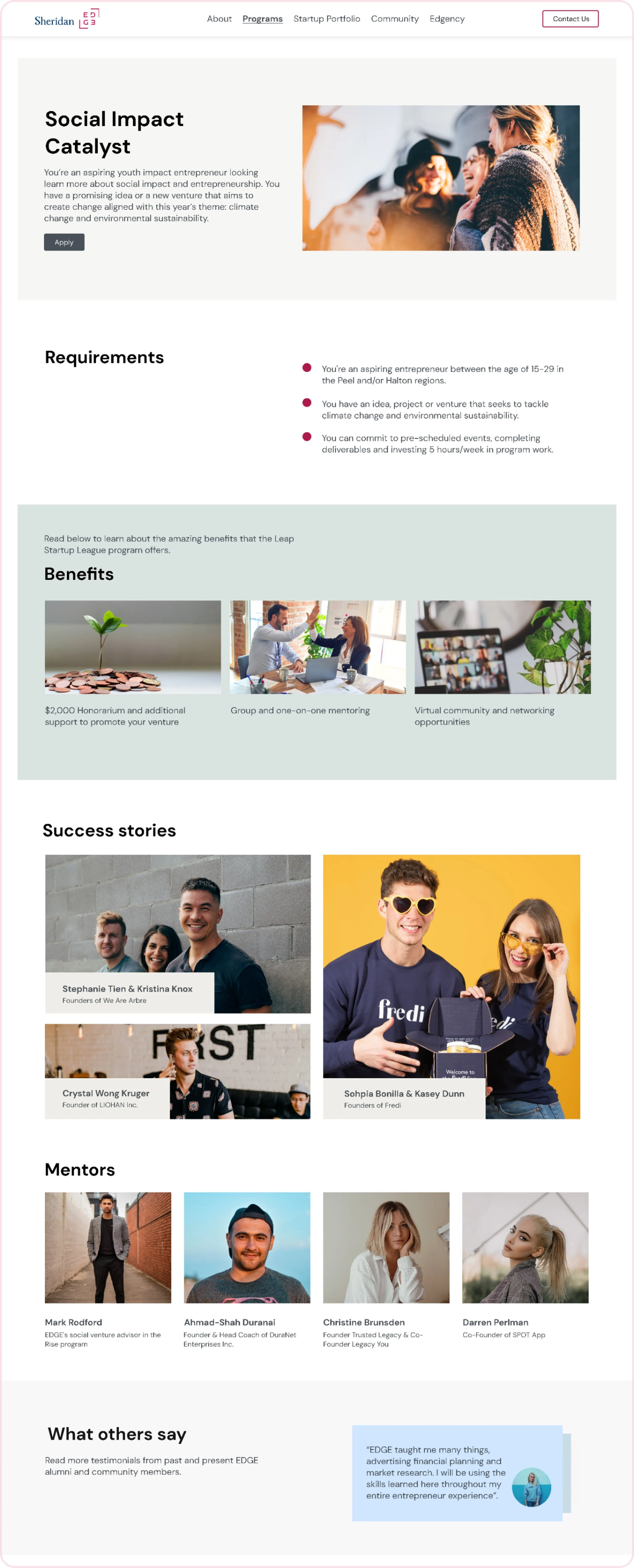 The Edge program page can classify Sheridan students and entrepreneurs, which can help users choose more conveniently